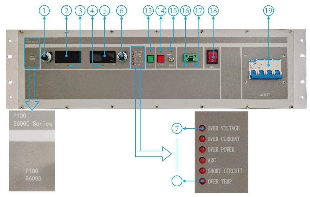 Alimentation CC haute tension 100 kV 60 mA/Paramètres d'entrée et de sortie